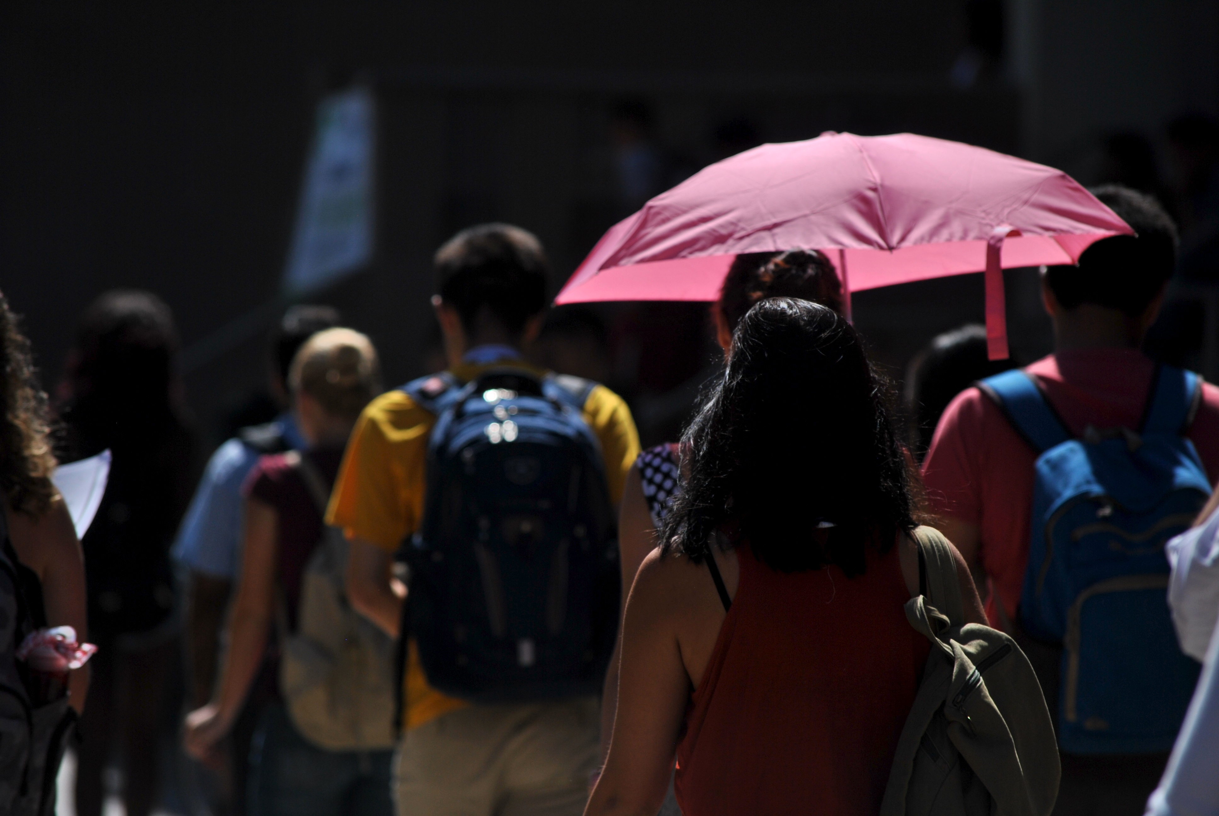 DSC_0004 Published August 26, 2014 at 3872 × 2592 in Between Classes ← Previous Next → The pink umbrella begins to weave through fellow students